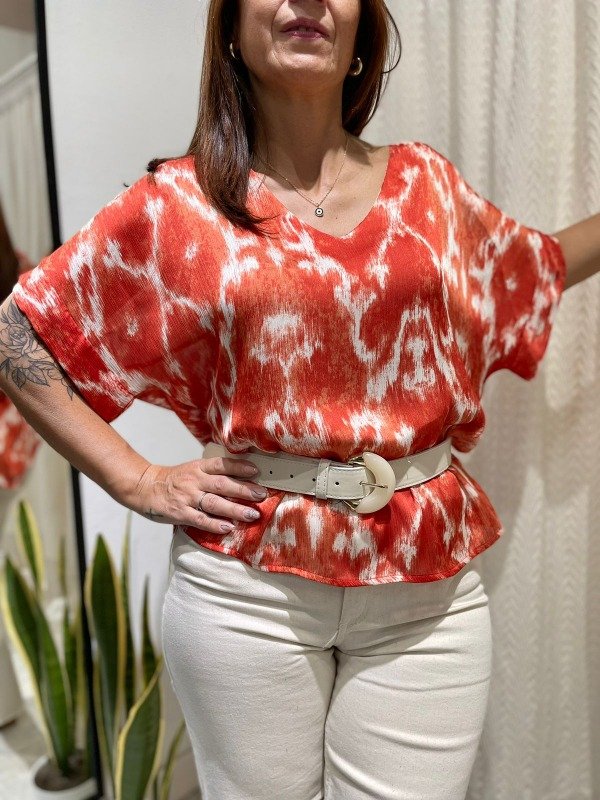 Blusa de crep seda con mangas y escote V. Ideal para tus looks más finos.