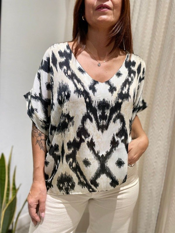 Blusa de crep seda con mangas y escote V. Ideal para tus looks más finos.
