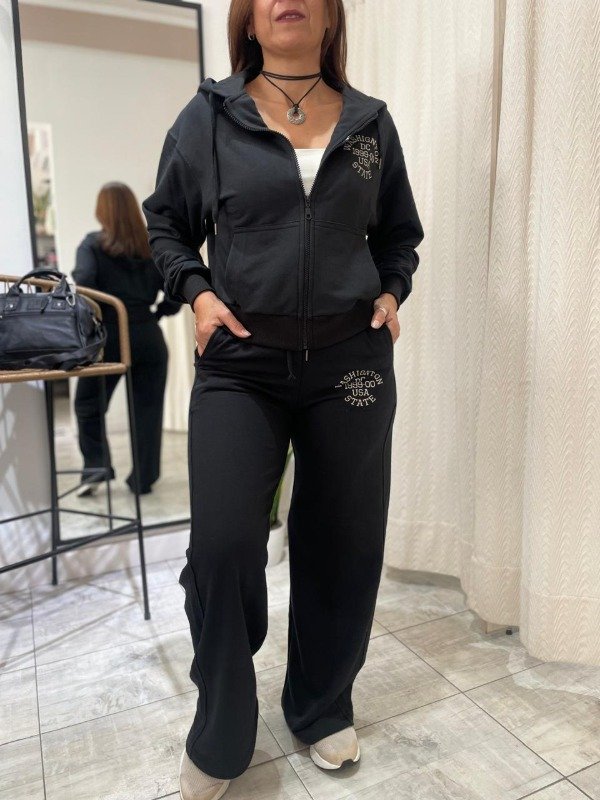 Modelo estilo canguro con bolsillos al frente y capucha regulabl