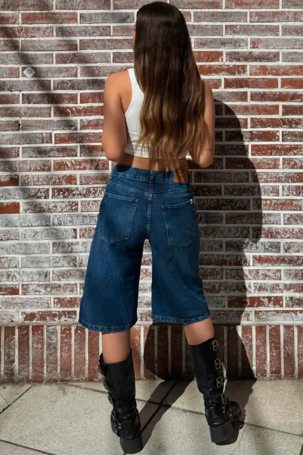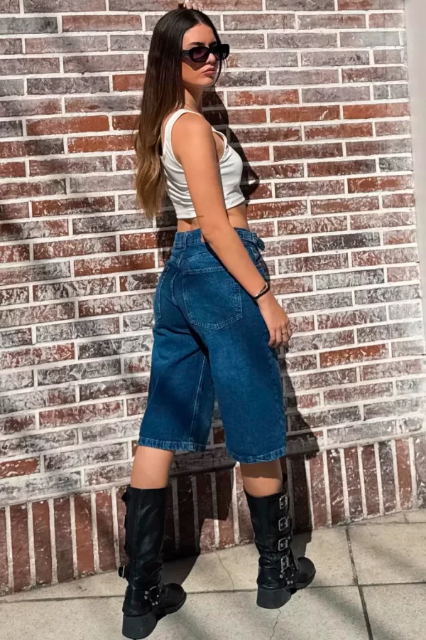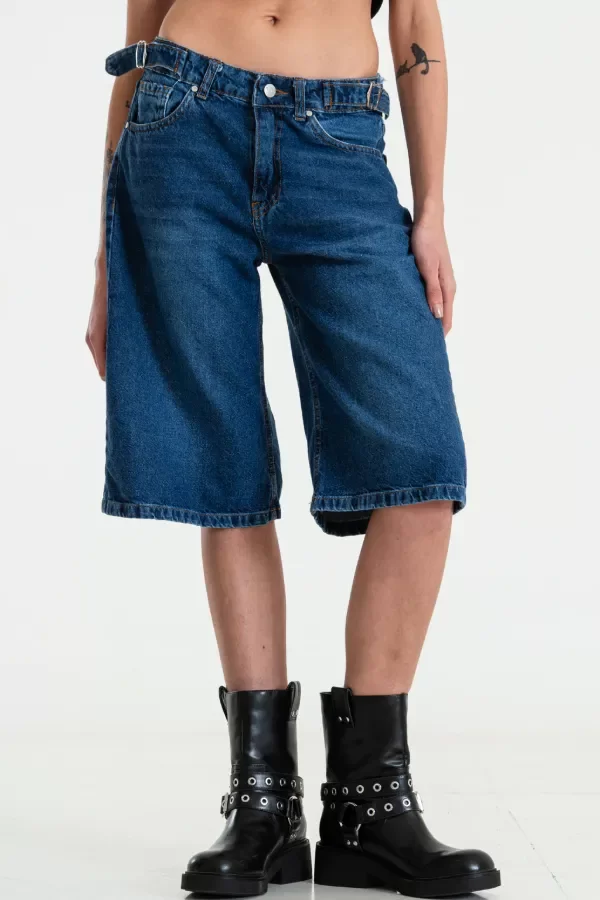 Bermuda tiro medio, rígida con hebillas a los laterales.