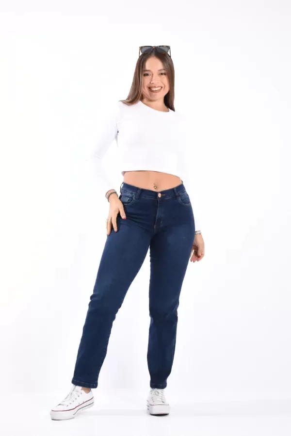 El jean recto clásico que necesitabas. Su corte tiro alto y elastizado brinda la seguridad y comodidad que tanto andabas buscando.
