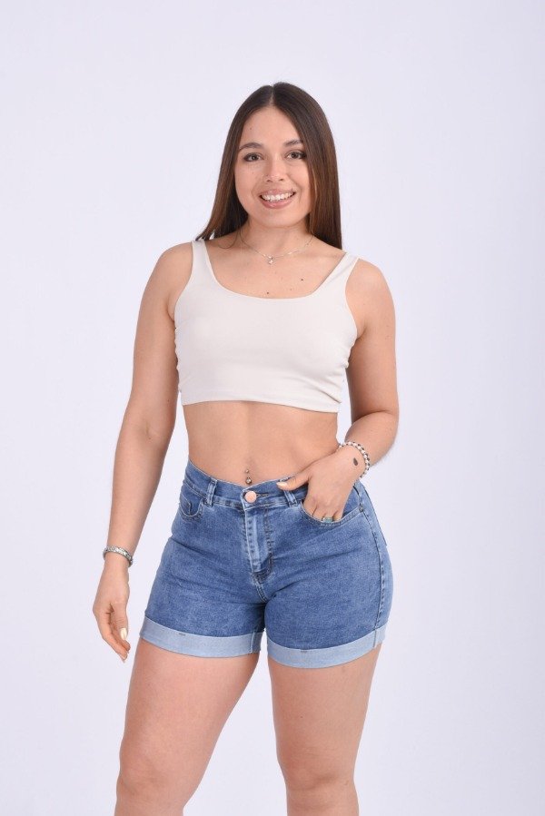 Short tiro alto, elastizado con detalle de doblez.