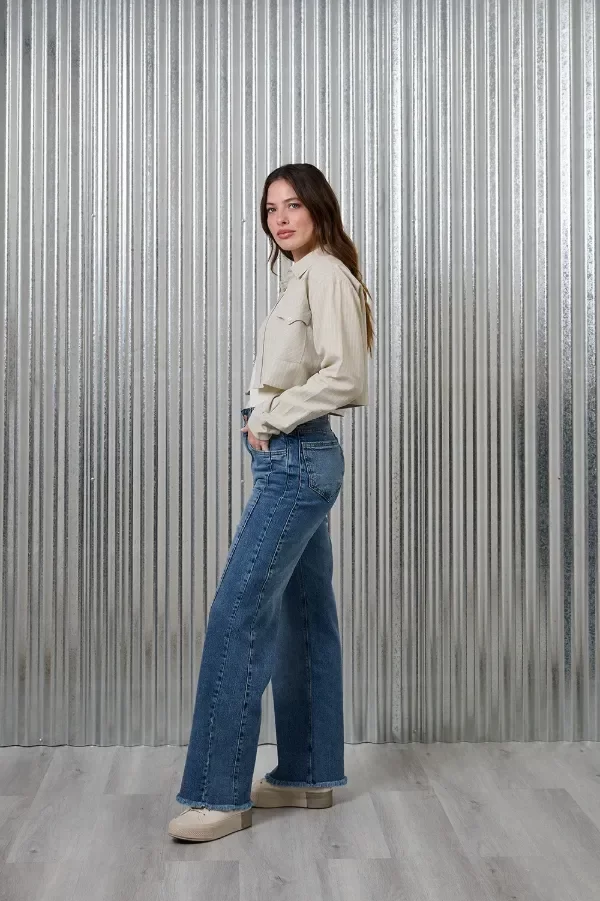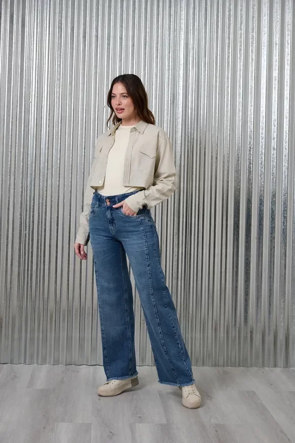 ¡El modelo ideal es este! Corte wideleg para usarlo en todo momento. Este modelo al tener la cintura más ancha da la visión de una cintura más entallada.