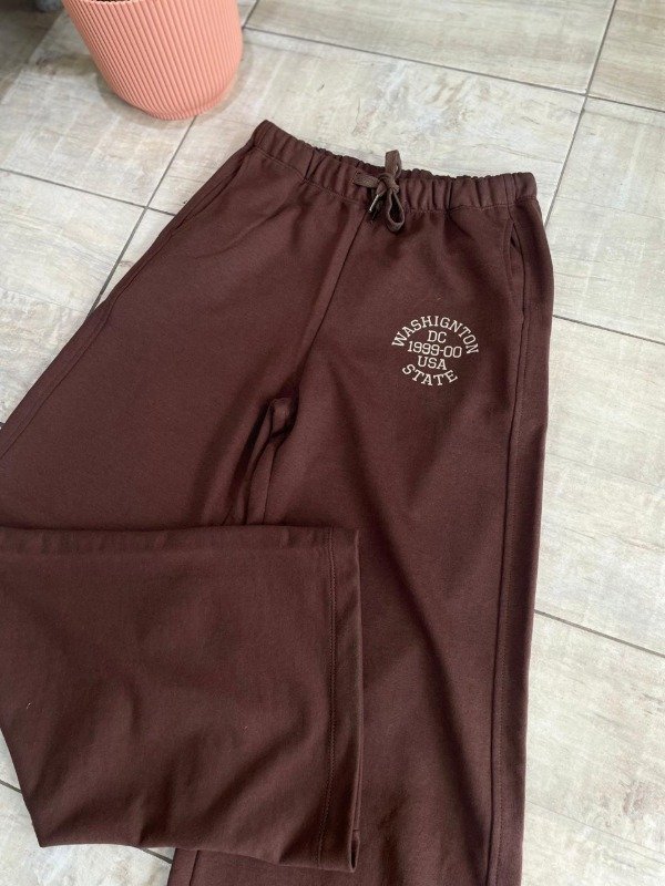 Pantalón corte recto, tiro alto del algodón rústico elastizado.