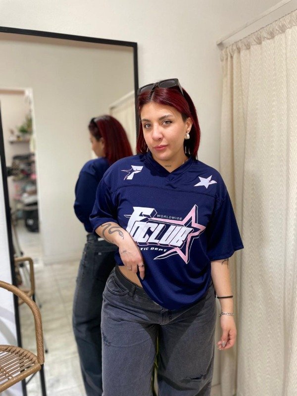 Remerón oversize estilo camiseta, de tela DRYFIT.