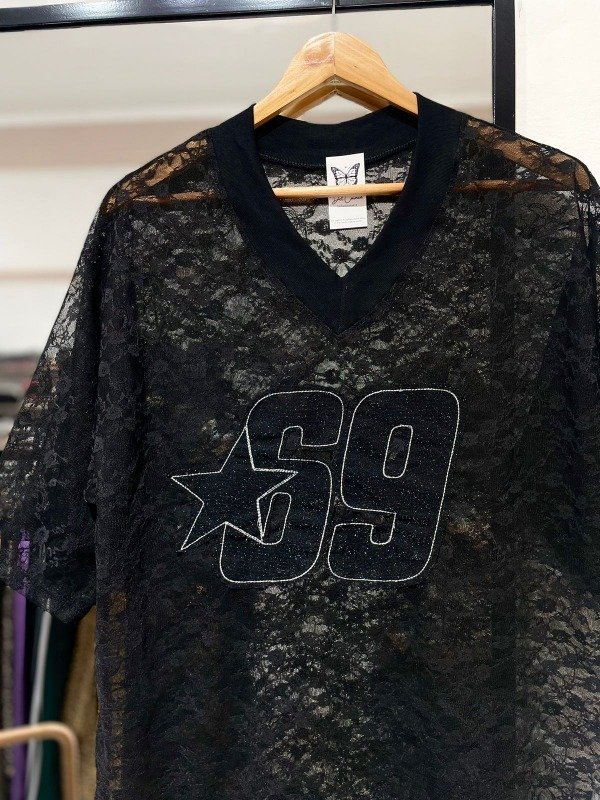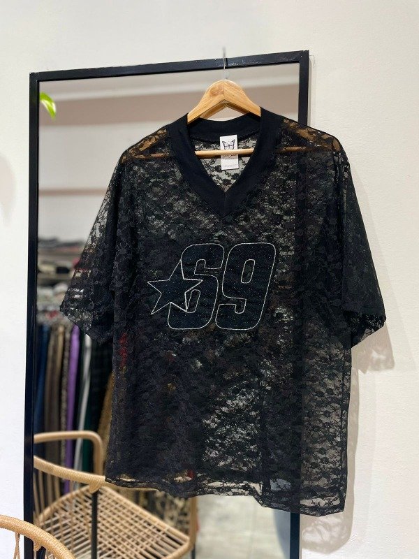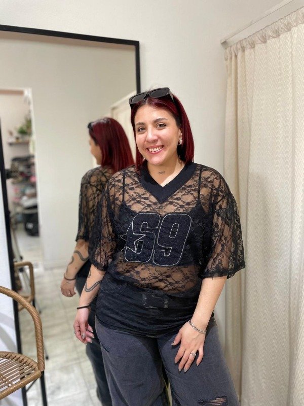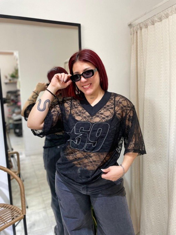 Remerón estilo oversize, de tela encaje.