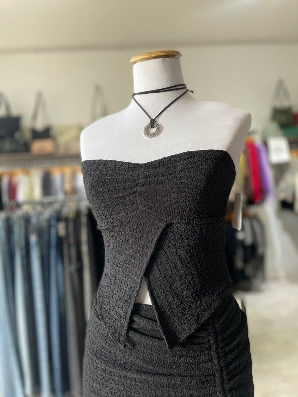 Top strapless de tela 50% poliester 50% viscosa. Talle único (M)